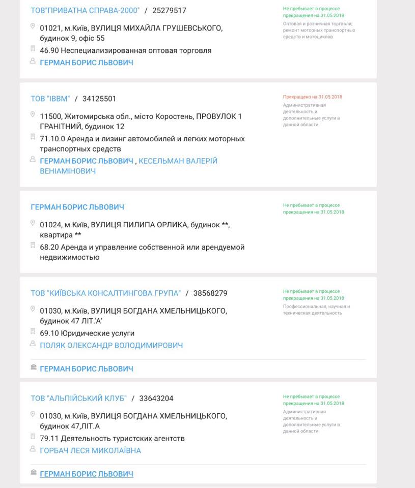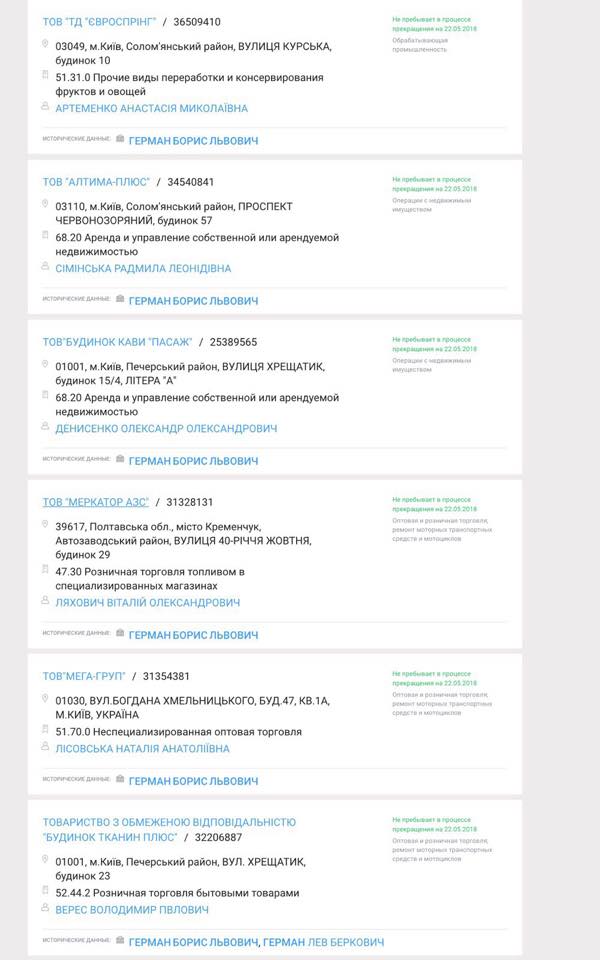 Это не единственная связь Германа-старшего с известными в украинской политике лицами. Немало упоминаний о связи Льва Берковича с Григорием Суркисом и "великолепной семеркой" пула СДПУ (о) конца 90-х – начала "нулевых". Журналисты указывают, что внуком Германа является Юрий Карпенко – один из соучредителей адвокатской компании "Би Ай Эм", где также имели долю Григорий Суркис и Виктор Медведчук.