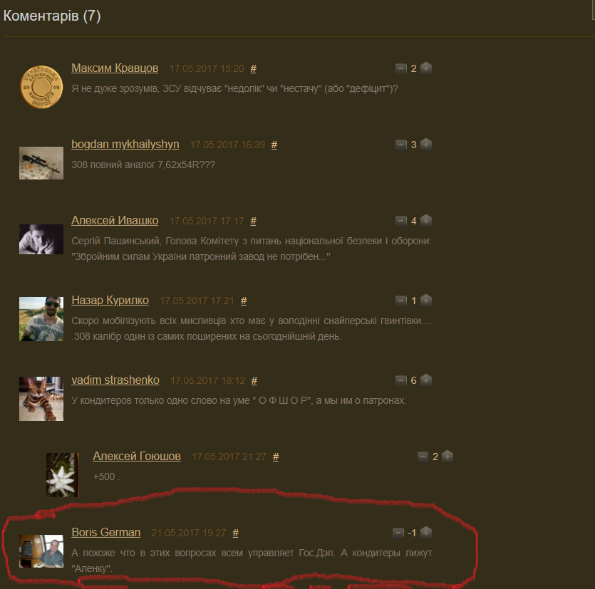 На ветке дискуссии, посвященной обсуждению причин недостачи боеприпасов для бойцов Вооруженных сил Украины на третьем году военного конфликта, пользователи делились своими рассуждениями о причинах этого и оценивали перспективность строительства завода по производству боеприпасов для снайперских винтовок.