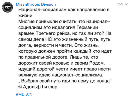 Принтскрин из Telegram-канала Misanthropic Division