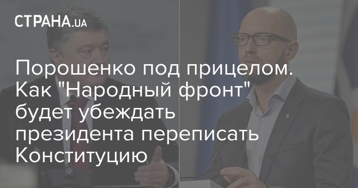 Один из столпов правящего режима партия "Народный фронт" (НФ) продолжает давить на президента Петра Порошенко в вопросе конституционных изменений, предложенных этой же политической силой. Как и прогнозировала "Страна", на съезде НФ в прошлую субботу председатель политсовета партии, экс-премьер-министр Арсений Яценюк вернулся к своей давней идее перехода к парламентско-президентской республике с уменьшением функций главы государства и усилением роли главы Кабинета министров.