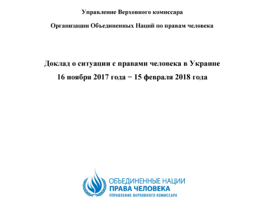 Двадцать первый доклад Управления Верховного Комиссара ООН по правам человека (УВКПЧ) о ситуации с правами человека в Украине на днях был опубликован на официальном сайте управления. Он охватывает период с 16 ноября 2017 года по 15 февраля 2018 года. За эти три месяца УВКПЧ задокументировало сотни случаев нарушения прав человека на территории Украины.