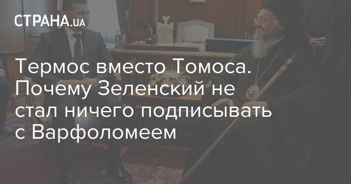 "С одной стороны, сам Зеленский явно дал понять, что не будет вмешиваться в церковный конфликт в Украине. С другой стороны, в его окружении звучат мнения, что нельзя идти на поводу у Варфоломея и соглашаться отдать ему зарубежные приходы, и вообще следует ставить вопрос на переговорах о бОльшей независимости для ПЦУ. Если в Киеве будут варить миро и западные приходы останутся за Украиной, это было бы причиной для примирения Епифания и Филарета. Я не исключаю, что Зеленский мог как-то попытаться поднять этот вопрос на встрече с Варфоломеем, но не получив на него четкого ответа, в ответ не захотел подписывать коммюнике", – говорит "Стране" собеседник в церковных кругах.