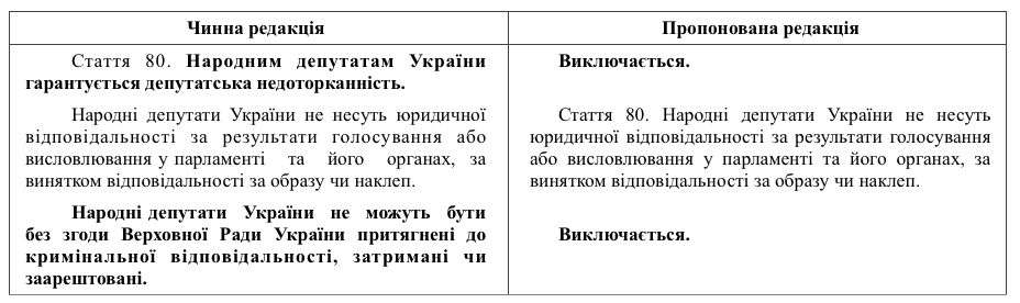 Стоит отметить, что Конституционный суд хоть и дал разрешение Раде менять Основной закон в части отмены депутатской неприкосновенности, тем не менее, озвучил свои замечания, что неприкосновенность народных депутатов обеспечивает безопасность от незаконного вмешательства в деятельность депутата, беспрепятственного и эффективного осуществления им своих функций.
