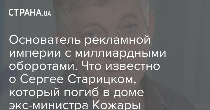 Как уже писала "Страна", 21 февраля в доме экс-министра иностранных дел Леонида Кожары под Киевом погиб известный рекламист и медийщик, руководитель рекламного холдинга Atlantic Group Сергей Старицкий.