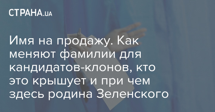 Специально нанятый человек идет в ЗАГС и просто меняет имя и фамилию накануне выборов. Выглядит это, конечно, подозрительно, однако с точки зрения украинского законодательства - все чисто.