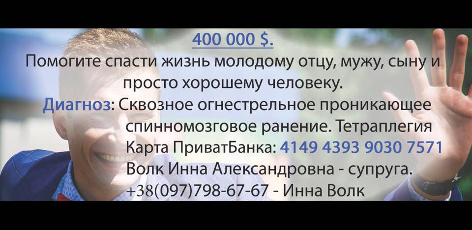 На собранные по инициативе семьи и коллег журналиста оператора "Первого криворожского" деньги им удалось оплатить текущую реабилитацию мужчины, и пригласить в Украину израильских врачей. Они специализируются на проблемах спинальников и выразили готовность сделать Волку операцию на диафрагментальном нерве.