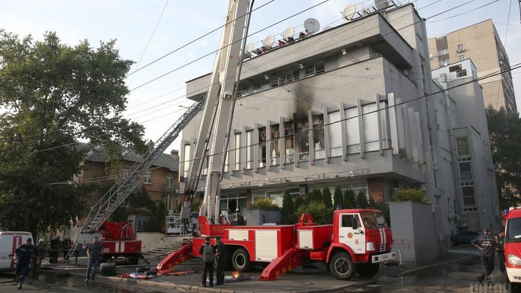 "Через некоторое время между охраной телеканала и митингующими возникла потасовка. Позже на втором этаже здания телеканала возник пожар с открытым огнем", - заявил он.