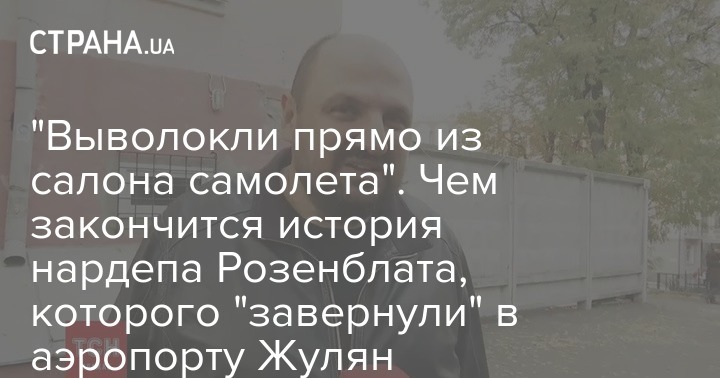 "Ничего такого не было и в помине, задержали без какого-либо решения суда. Розенблат прошел паспортный контроль, то есть запрет на выезд у него отсутствовал, - говорит "Стране" адвокат нардепа Алексей Шевчук. - НАБУшники зашли в самолет, когда тот готовился ко взлету... Его просто выволокли на улицу без каких-либо документов и незаконно обыскали".