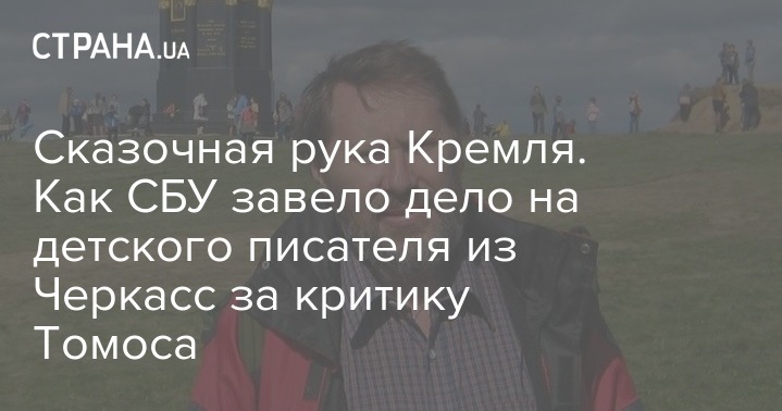 "Оперативники спецслужбы установили, что житель Черкасс, уроженец РФ, член Союза писателей России, изготавливал по заказу российских кураторов материалы, в которых осуждал и негативно оценивал создание Поместной церкви Украины и получение решения о предоставлении Томоса. Эти материалы он распространял на российских Интернет-ресурсах", подтвердила информацию СБУ через полтора часа после того как новости об обыске у сказочника появились на сайтах.