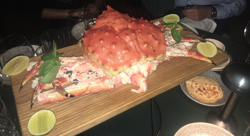 Цены тут действительно высокие: салат "Нисуаз" с тунцом стоит 265 грн, томатный суп с морепродуктами - 290 грн, а 1999 гривен – цена за килограмм краба. Как правило, краб весит от 3 до 6 кг.