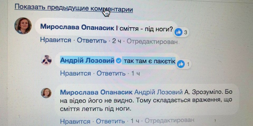 Как только пользователи социальных сетей начали возмущаться, мол, как так - политик бросает шелуху прямо под сидение, Лозовой оправдался в комментариях, что там внизу якобы стоит "пакетик".
