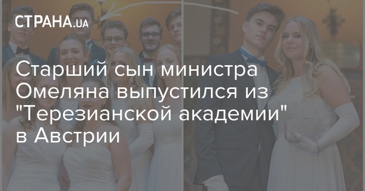 Пока дочки президента Петра Порошенко осваиваются в Лондоне, где обе будут получать высшее образование, "Стране" стало известно, что этим летом старший сын министра инфраструктуры Владимира Омеляна выпустился из открытой гимназии "Терезианская академия" (Theresianische Akademie Wien) в Австрии.