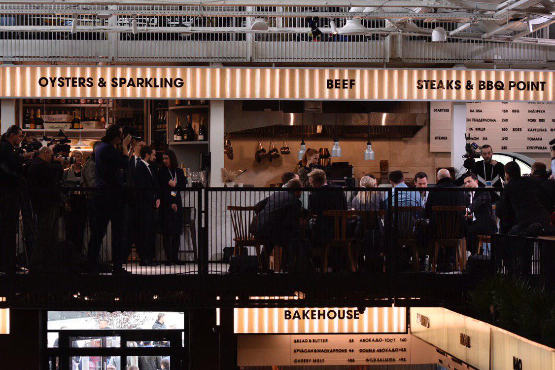 Здесь 22 ресторана и пара баров на нескольких уровнях. И пока Зеленский наверху беседует с журналистами, внизу все заведения работают в обычном режиме.