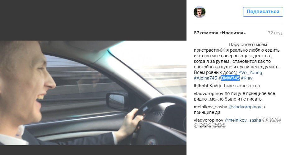 К слову, супруг Арины Мунтян Александр очень любит скорость и дорогие автомобили. На своей странице в Instagram парень частенько публикует свои фотографии за рулем, под которыми ставит хэштег BMW 745. Такой б\у автомобиль 2005 г.в. стоит, в среднем, 18 тысяч долларов или 450 тысяч гривен.