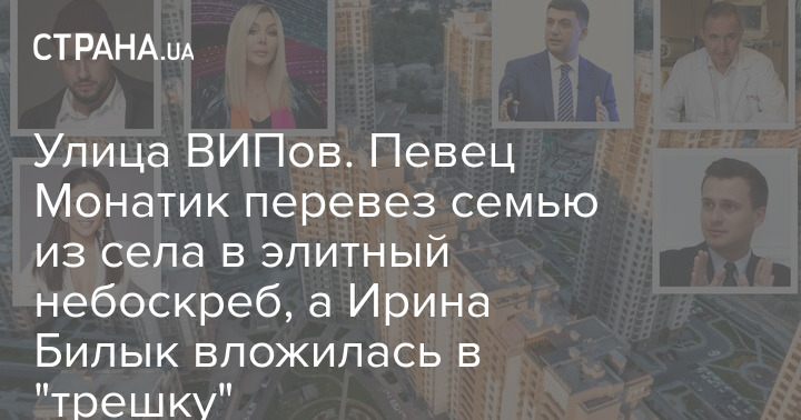 Подобно Монатику поступила, и народная артистка Ирина Билык. Певица сейчас живет в бунгало под Киевом, а деньги вложила в быстро растущую в цене недвижимость. По нашим данным, которые подтверждают официальные документы, особняк знаменитой блондинки находится в коттеджном городке «Козырная карта», что в поселке Калиновка по Житомирской трассе. Там у нее за забором строится друг шансонье Гарик Крический. А в «Новопечерских Липках» у примы украинской эстрады «трешка» и место для авто в подземном паркинге. Общая площадь апартаментов 125 кв. м.