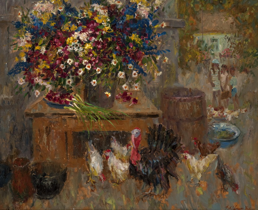 Множество картин, среди которых полотна пейзажиста Сергея Васильковского "Вечер на Донце" (XIX в), Виктора Ковтуна "Васильки с ромашками" и другие.