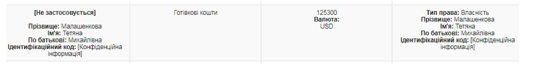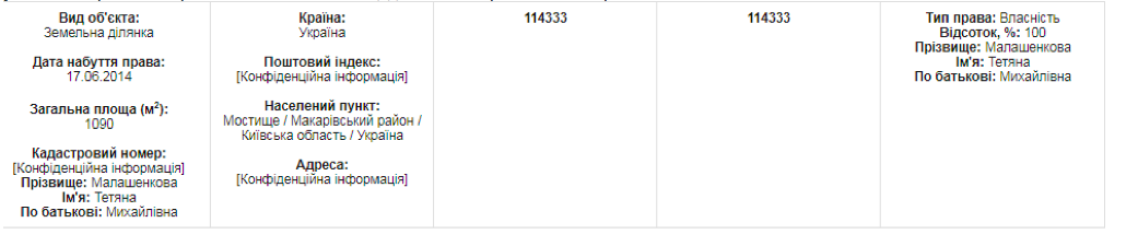 Мария Ивановна Малашенкова вместе Татьяной Малашенковой и другими членами семьи являются совладельцами еще одной киевской квартиры, которую последняя указывала в своих декларациях: