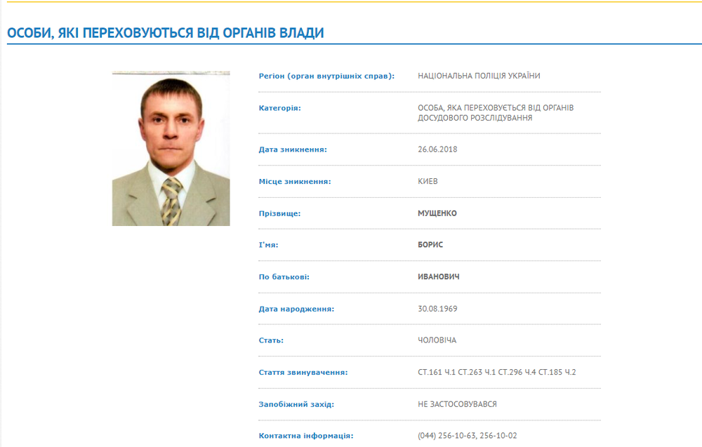 Через четыре месяца судья Цокол постановила еще более смягчить обязательства уроженцу села Рыжановка Звенигородского района Черкасской области. С 11 мая Мущенко был помещен под ночной домашний арест, после чего исчез из поля зрения правоохранительных органов. В настоящее время он объявлен в розыск.