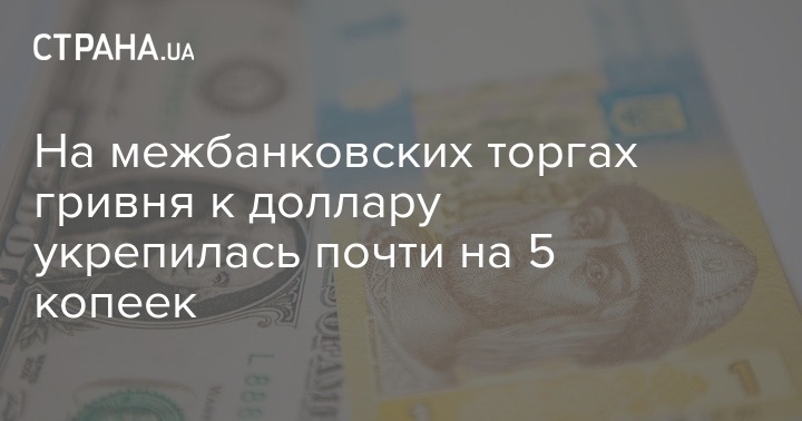 На межбанковских торгах гривня к доллару укрепилась почти на 5 копеек