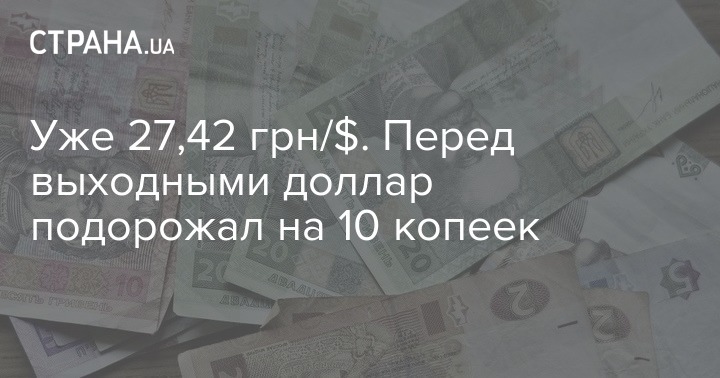 Уже 27,42 грн/$. Перед выходными доллар подорожал на 10 копеек