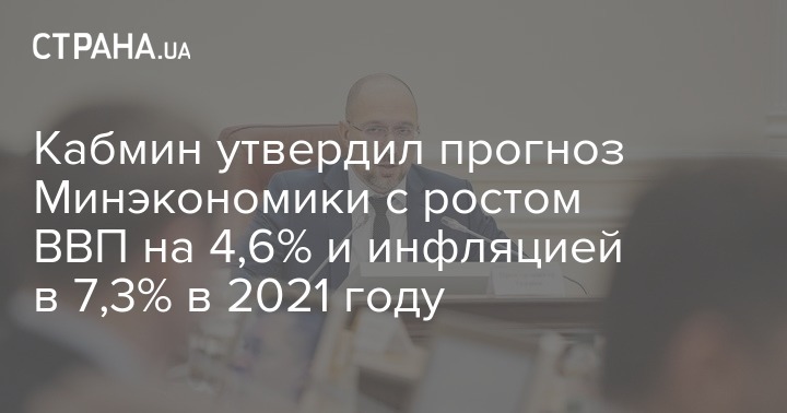 Кабинет министров утвердил подготовленный Минэкономики прогноз экономического и социального развития Украины на ближайшие три года с доработкой в трехдневный срок. В документе предусматривается рост ВВП в 2021 году на уровне 4,6% при инфляции 7,3%.