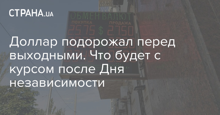 Напомним, утром в пятницу, 21 августа, Национальный банк установил официальный курс на уровне 27,48 гривен за доллар, что на 17 копеек выше, чем в предыдущий рабочий день.