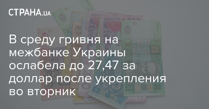 В среду гривня на межбанке Украины ослабела до 27,47 за доллар после укрепления во вторник