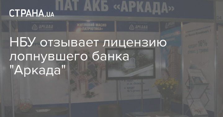 Национальный банк Украины принял решение отозвать лицензию и ликвидировать лопнувший банк "Аркада".