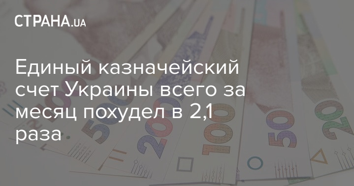 За последний месяц сумма средств на едином казначейском счете Украины сократилась в 2,1 раза. Если  1 сентября 2020 года на нем было 45,657 млрд гривен, то на 1 октября сумма уменьшилась до 21,275 млрд гривен. Об этом сообщается на сайте Государственной казначейской службы.