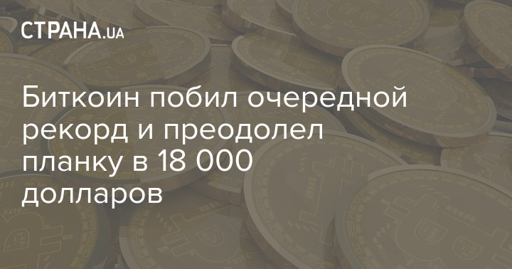 Биткоин побил очередной рекорд и преодолел планку в 18 000 долларов