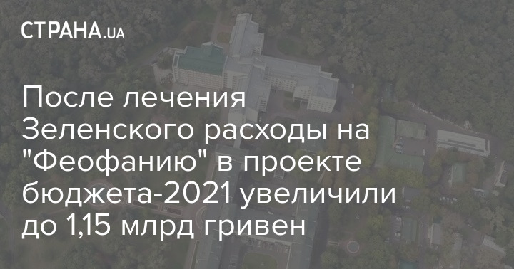 После лечения Зеленского расходы на "Феофанию" в проекте бюджета-2021 увеличили до 1,15 млрд гривен