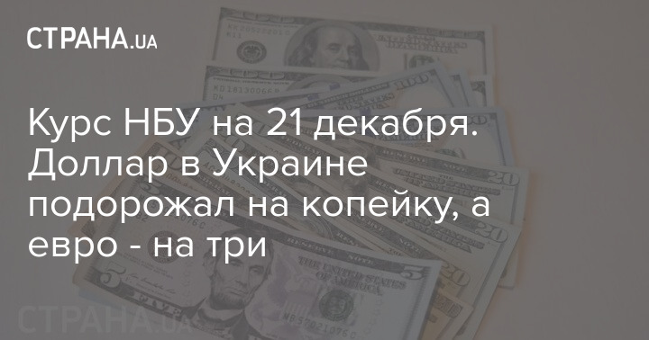Курс НБУ на 21 декабря. Доллар в Украине подорожал на копейку, а евро - на три