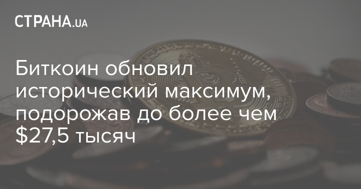 Биткоин обновил исторический максимум, подорожав до более чем $27,5 тысяч