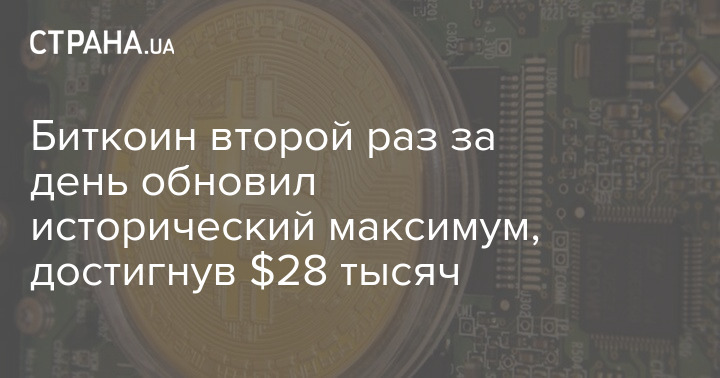В воскресенье, 27 декабря, криптовалюта биткоин второй раз за день обновила исторический максимум, превысив отметку в $28 тысяч.
