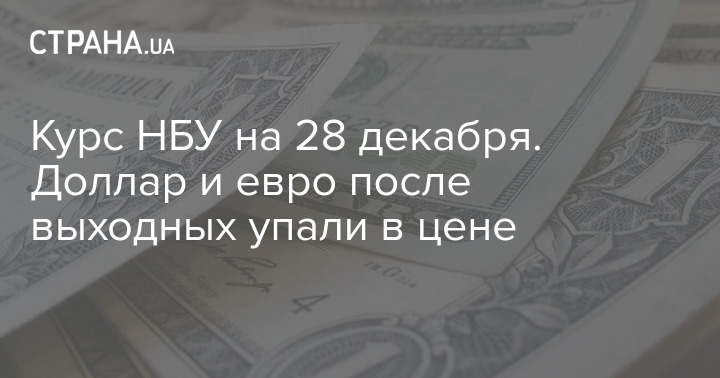 Курс НБУ на 28 декабря. Доллар и евро после выходных упали в цене