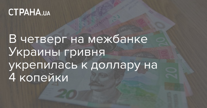 В четверг на межбанке Украины гривня укрепилась к доллару на 4 копейки