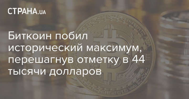 Биткоин побил исторический максимум, перешагнув отметку в 44 тысячи долларов
