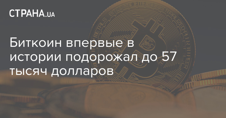 Биткоин впервые в истории подорожал до 57 тысяч долларов