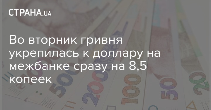 Во вторник, 2 марта, гривня укрепилась на межбанке относительно доллара. За день "зеленый" подешевел на 8,5 копеек - с 27,97/27,99 грн/$ до 27,885/27,905 грн/$, а евро остался практически на том же уровне 33,58/33,60 гривен за единицу европейской валюты, передает Finance.ua.