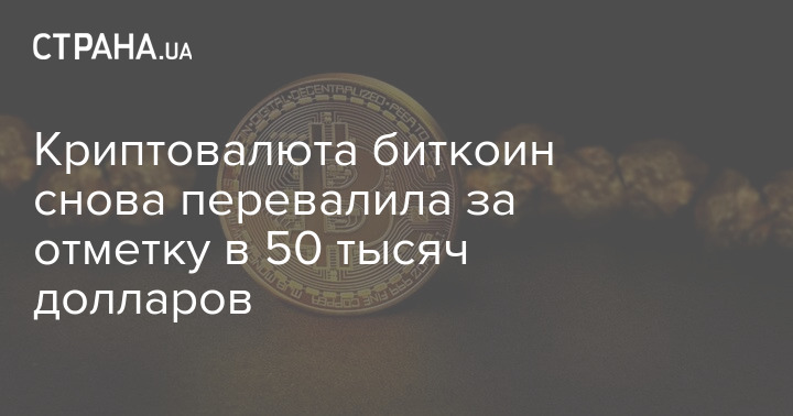 Криптовалюта биткоин снова перевалила за отметку в 50 тысяч долларов