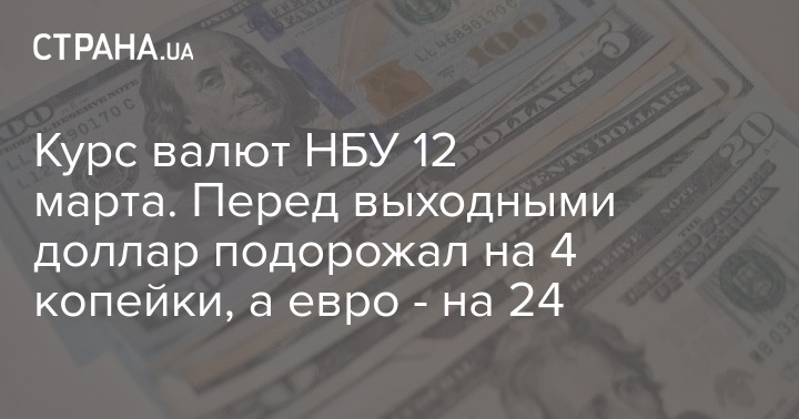 Курс валют НБУ 12 марта. Перед выходными доллар подорожал на 4 копейки, а евро - на 24