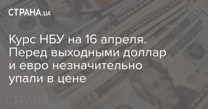 Национальный банк Украины в пятницу, 16 апреля, установил официальный курс гривны по отношению к иностранным валютам. По сравнению с предыдущим рабочим днем доллар и евро упали в цене.
