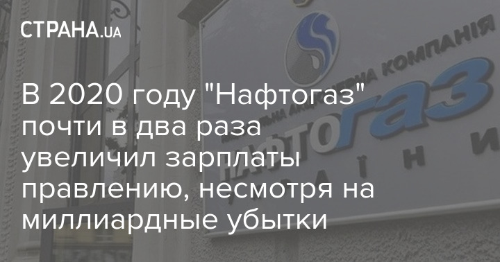 В 2020 году "Нафтогаз" почти в два раза увеличил зарплаты правлению, несмотря на миллиардные убытки