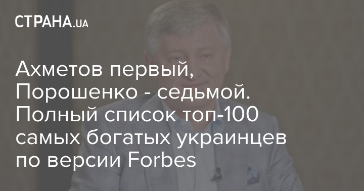 Журнал Forbes опубликовал имена сотни самых богатых граждан Украины. Рейтинг уже традиционно возглавляет Ринат Ахметов, второе место, как и в прошлом году, досталось владельцу группы "Интерпайп" Виктору Пинчуку. А вот экс-президент Украины Петр Порошенко опустился с третьего на седьмое место.