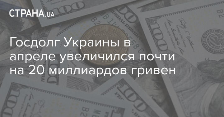 В течение апреля сумма государственного и гарантированного государством долга Украины увеличилась на 19,9 млрд гривен и на 1,16 млрд в долларовом эквиваленте и достигла 2,53 трлн гривен (91,33 млрд долларов).
