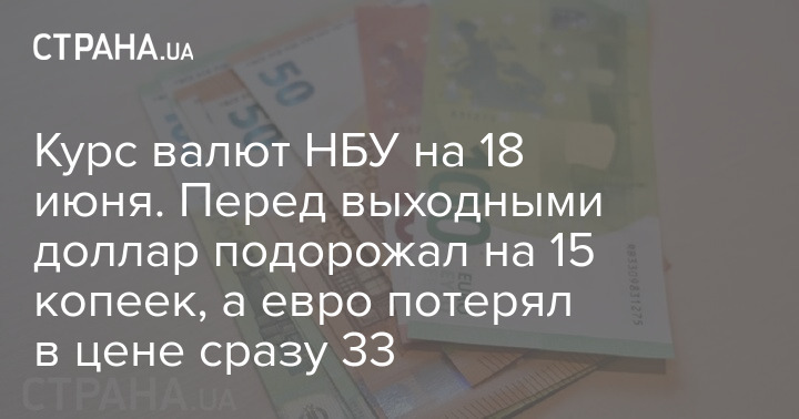 Национальный банк Украины (НБУ) в пятницу, 18 июня, установил официальный курс гривны по отношению к иностранным валютам. По сравнению с предыдущим рабочим днем доллар подорожал, а евро резко потерял в цене.
