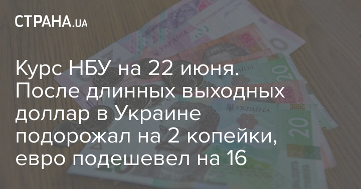 Курс НБУ на 22 июня. После длинных выходных доллар в Украине подорожал на 2 копейки, евро подешевел на 16