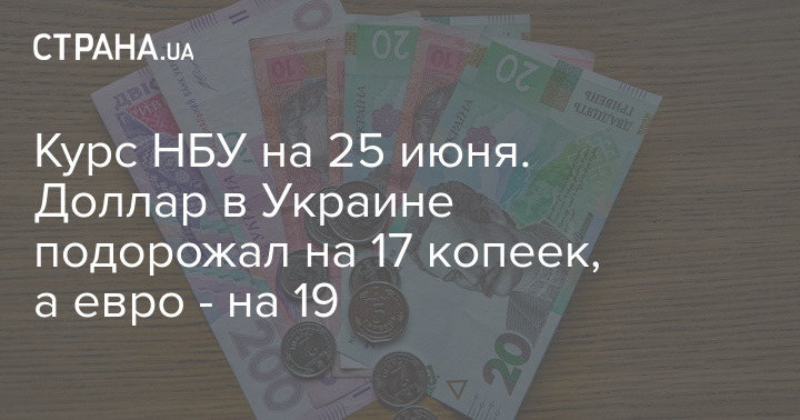 Курс НБУ на 25 июня. Доллар в Украине подорожал на 17 копеек, а евро - на 19