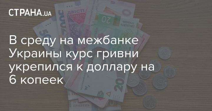 Согласно данным Нацбанка Украины, справочный курс гривни на межбанке в среду укрепился до 26,36 грн/$1 с 26,44 грн/$1 во вторник.