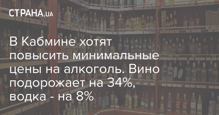 Подорожание алкоголя в Минэкономики объяснили ростом с 2018 года средней себестоимости производства одного литра 100%-ного спирта на 14,7% - с 139,82 грн до 160,41 грн. Также в ведомстве считают, что рост минимальных цен на алкоголь позволит увеличить прибыль его производителей с 1 грн/л 100%-ного спирта до 20 грн/л.